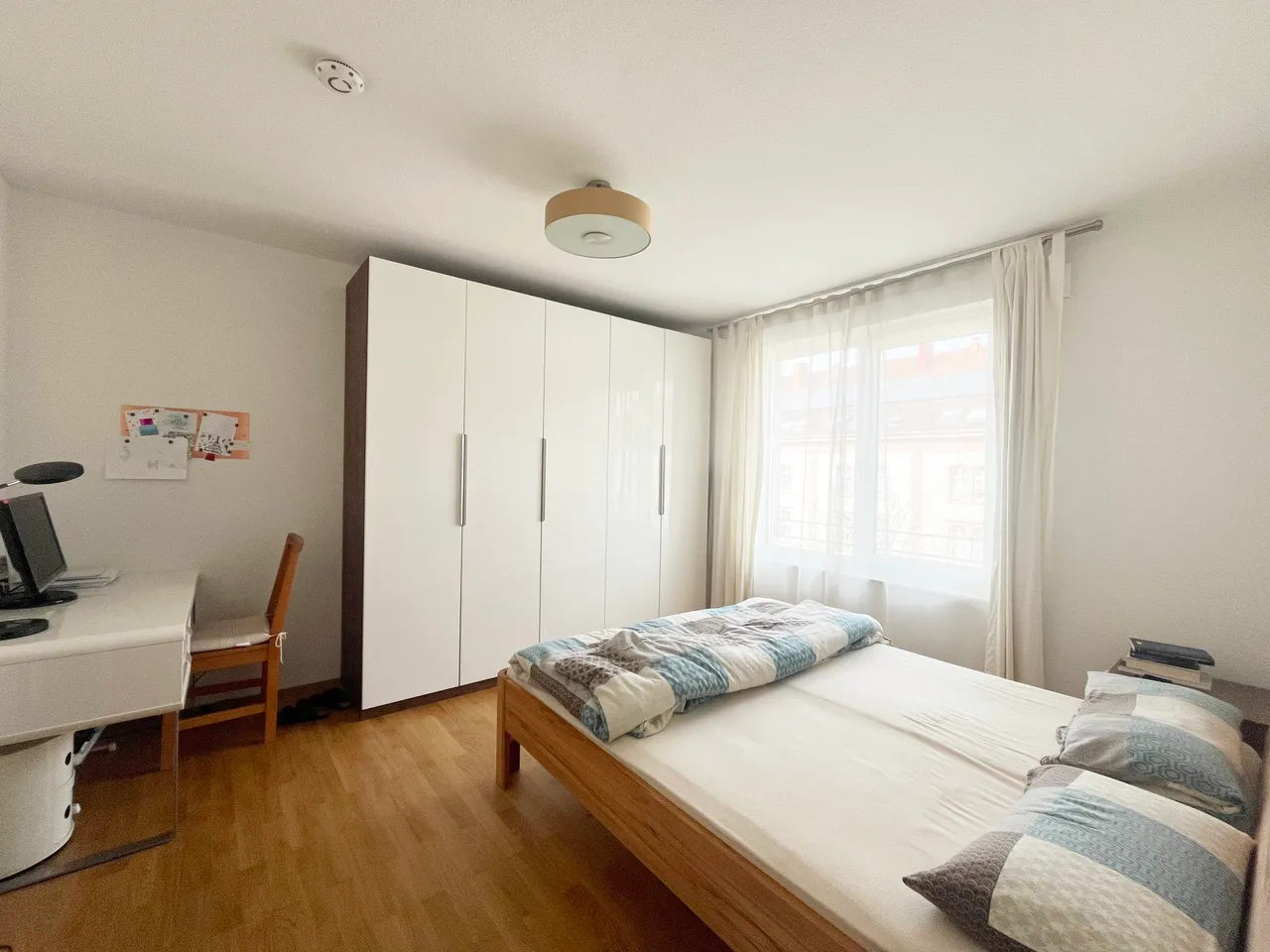 Das Schlafzimmer überzeugt durch dessen gute Schnittweise und bietet ausreichend Platz für einen geräumigen Kleiderschrank sowie ein großzügiges Bett.
