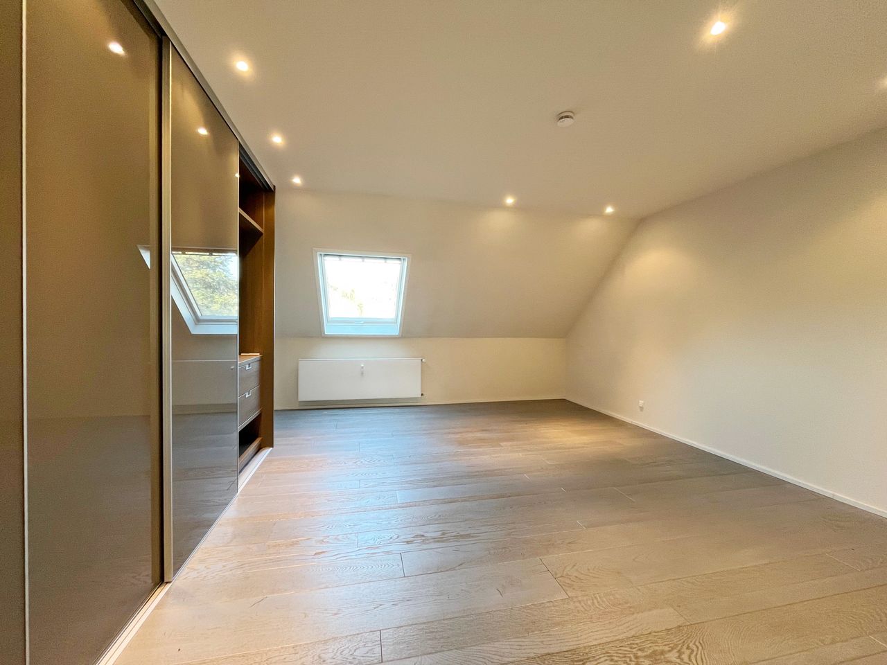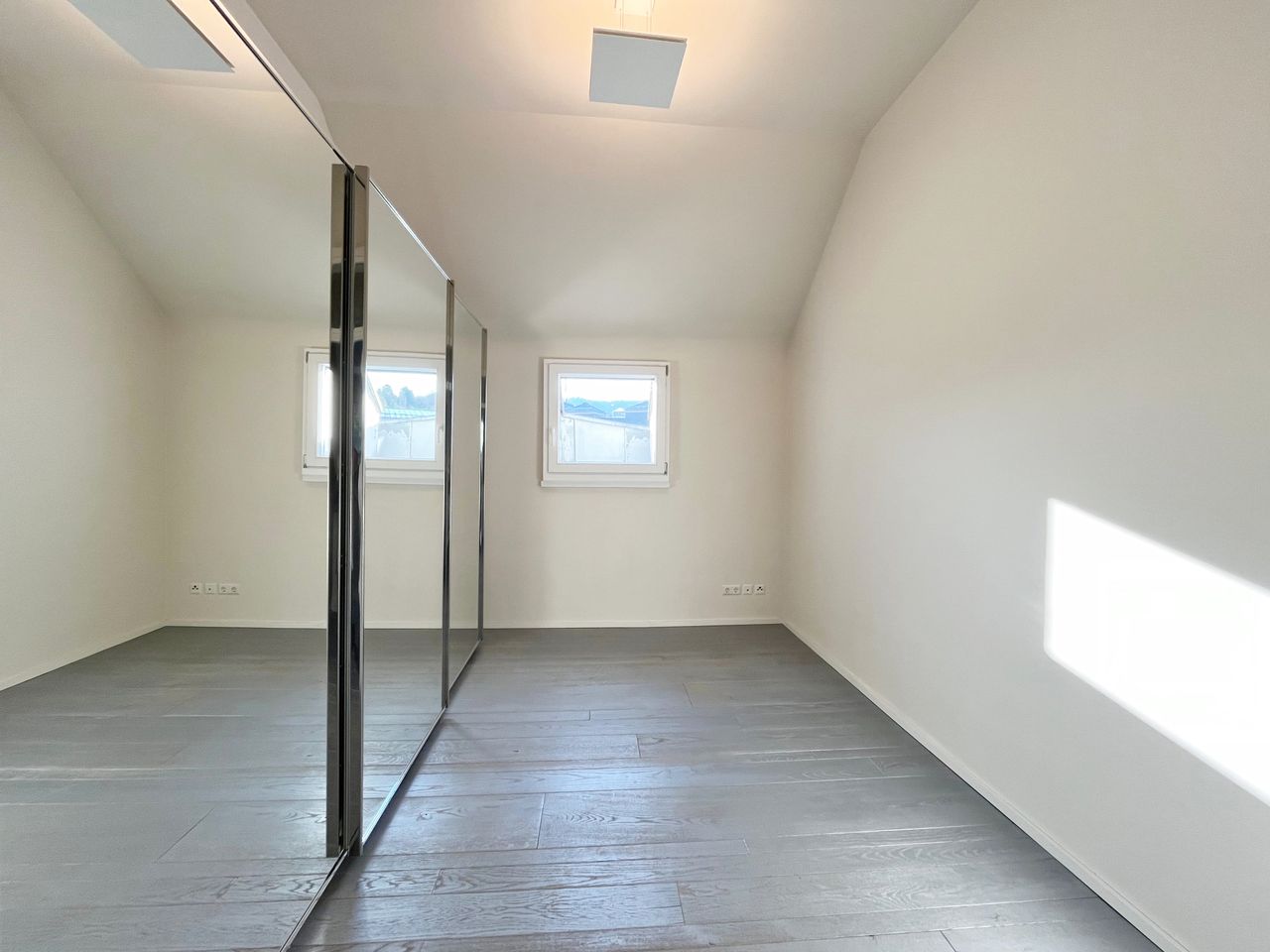 Links vom Eingang befindet sich ein geräumiges Schlafzimmer, das mit einer Klimaanlage ausgestattet ist. Direkt gegenüber von diesem liegt ein weiteres Zimmer, welches Sie ganz nach Ihren individuellen Bedürfnissen nutzen können – sei es als Arbeitszimmer, Kinderzimmer, Gästezimmer oder Ankleidezimmer.