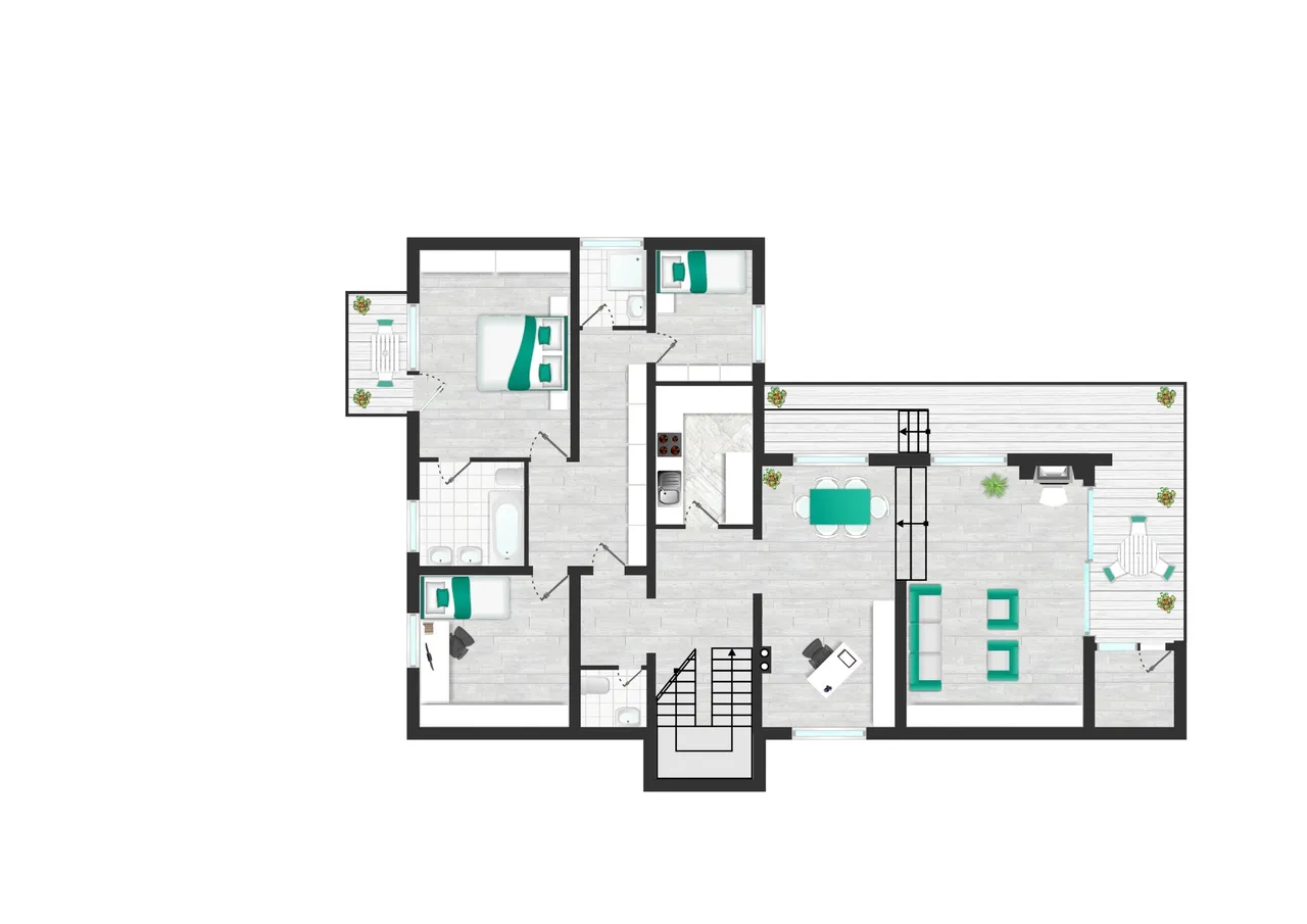 Der Innenbereich überzeugt durch klare Formen und eine ruhige, elegante Atmosphäre. Insgesamt vier Schlafzimmer stehen zur Verfügung, darunter das großzügige Elternschlafzimmer mit Bad en Suite, eigenem Balkon und bei guter Sicht ein Blick auf das alte Schloss – ein kleines Detail, das jeden Tag besonders macht. Ergänzt wird das Raumangebot durch ein weiteres Bad, ein Gäste-WC und eine Küche, die sich mit neuen modernen Akzenten in ein echtes Highlight verwandeln lässt.