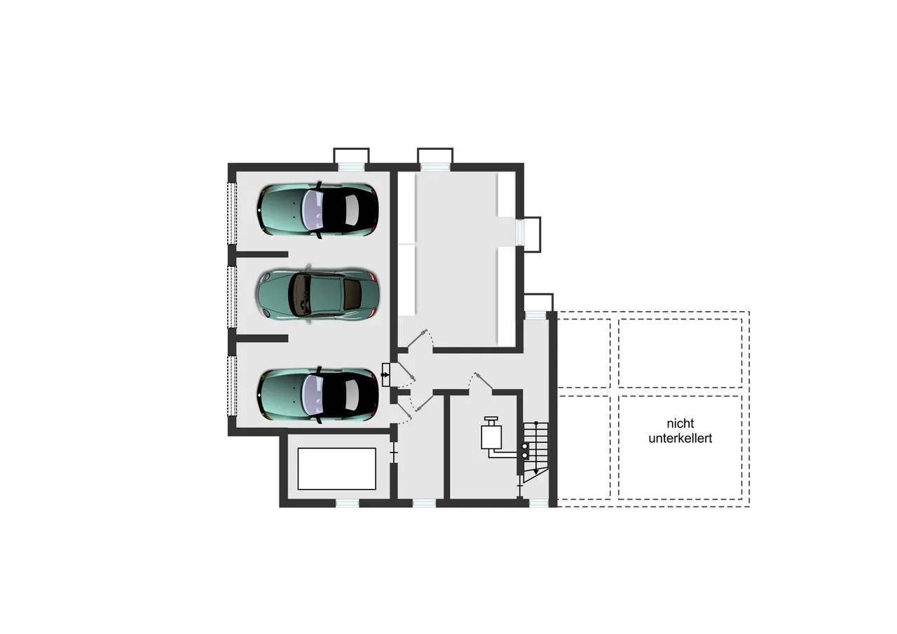 Auch funktional überzeugt das Anwesen: Drei Garagen und drei Stellplätze davor bieten ausreichend Raum für Fahrzeuge und Lifestyle. Von der Straße kaum einsehbar, genießen Sie hier Privatsphäre, Ruhe und einen unverwechselbaren Blick ins Grüne – ein Zuhause mit Charakter, Stil und Seele.